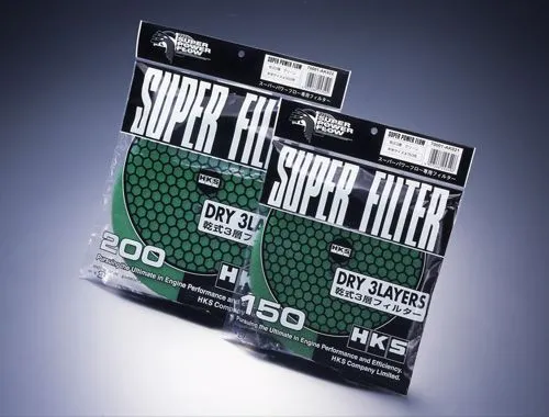 HKS replacement Filter Elements are available in a dry 3-layer, triple density or wet 2-layer, dual density construction. The dry 3-layer type is standard in SMF Reloaded Intake kits, and is designed for superior filtration while still providing excellent airflow. The wet 2-layer type is included in Racing Suction kits and is focused on maximizing airflow for performance, yet still keeping harmful particles from the engine. If your vehicle is in a high dust area, HKS recommends using dry 3-layer elements.