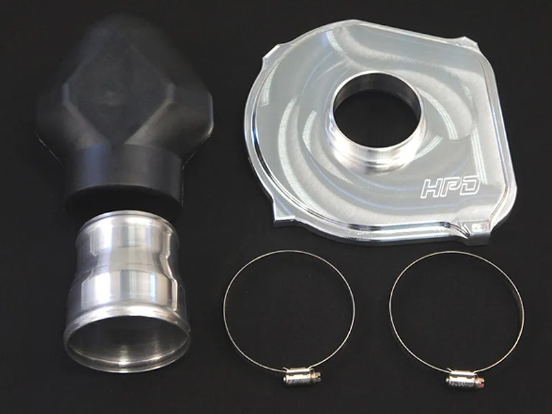 CNC machined from 1 piece of billet alloy, and includes an alloy adaptor and high flow cobra head 3.0" 90 degree rubber elbow. CNC machined internal bell mouth.