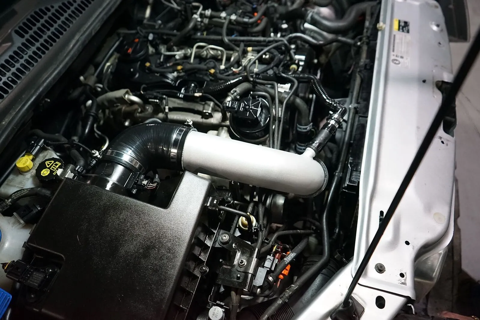 HPD''s high flow air intake kit has been designed for those looking for increased flow and performance for there 2 litre Bi turbo Amarok common rail diesel. It also can be used to replace the factory hose that is know to go hard and split allowing dust into the turbo wearing the compressor blades. HPD's hiflow air intake kit comes with HPD's aluminuim 3" piping with 19mm fitting welded in place for engine breather pipe return and all quality silicon hoses, clamps and fittings required.