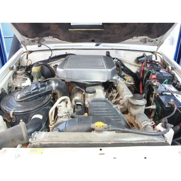 The HPD 1HZ top mount intercooler kit has been designed to fit your 1HZ powered Landcruiser. This kit will fit a 1HZ with an aftermarket turbo kit. This kit uses our 280x300x76mm bar and plate intercooler core with alloy mandrel bent piping silicone hoses and hose clamps The intercooler is fan assisted with a 9" thermo fan and includes a bonnet scoop.
