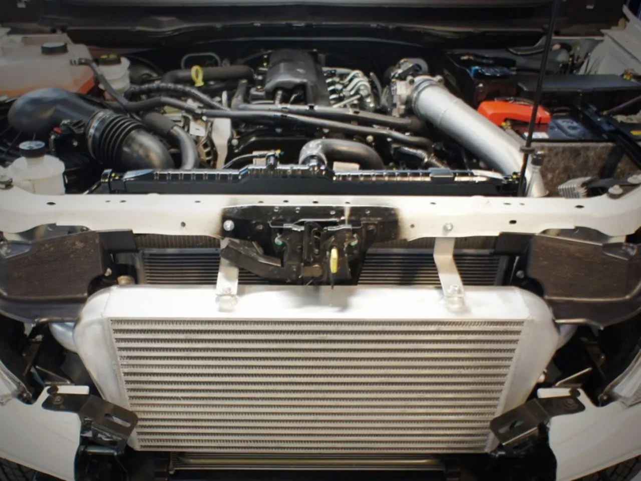 This High Performance Diesel intercooler kit has been designed to suit Ford Ranger PX current models (2012+) with 2.2Lt 4 cylinder engine. The intercooler delivers reduced inlet temperatures and engine running temperatures. This kit allows fitment of a winch and bull bar and re-positions the intercooler into a higher position that is less likely to suffer damage when off-roading.
