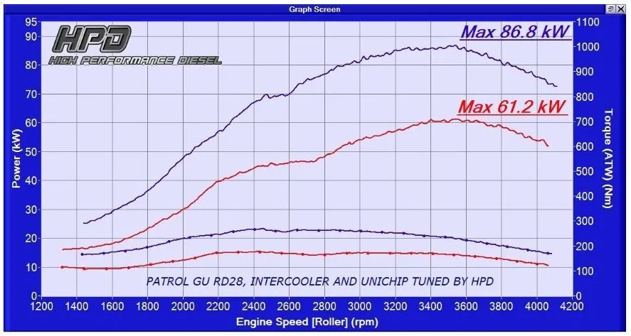 By fitting HPD's RD28 intercooler with turbo back exhaust system and unichip you will be surprised with the difference in torque and power the RD28 really has to offer.