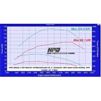 HPD’s intercooler kit improves torque and power just on its own but really show’s it potential in keeping cooler intake temps and egt’s when engine tuning modifications come into play. These top mount intercoolers are great right up to 180kw’s at the wheels.