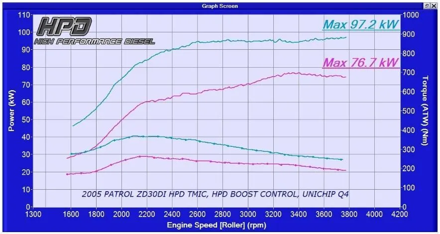 HPD’s intercooler kit improves torque and power just on its own but really show’s it potential in keeping cooler intake temps and egt’s when engine tuning modifications come into play. These top mount intercoolers are great right up to 130kw’s at the wheels.