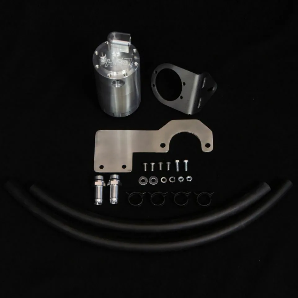 HPD’s oil catch can / oil separators come in universal and complete kits with all required stainless steel laser cut bracketry, correct size hose tail fitting, washable internal stainless mesh filters, cut to size oil resistant hosing, bolts, nuts, washer, spring clamps and installation instructions for each vehicle.