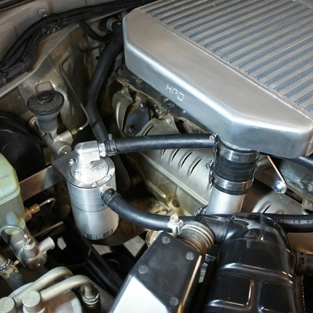 The HPD direct bolt on separator kits are ideal for 4WDs running an intercooler or turbo kit and they come complete with mounting brackets, rubber hoses and hose clamps. The separators eliminate oil vapour that can contaminate the intake system and therefore helps keep the intercooler clean (internally). This translates into more efficient cooling and better power delivery from your engine.