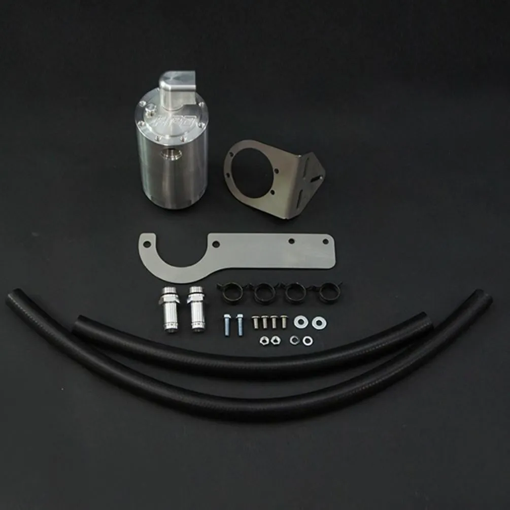 HPD’s oil catch can / oil separators come in universal and complete kits with all required stainless steel laser cut bracketry, correct size hose tail fitting, washable internal stainless mesh filters, cut to size oil resistant hosing, bolts, nuts, washer, spring clamps and installation instructions for each vehicle.