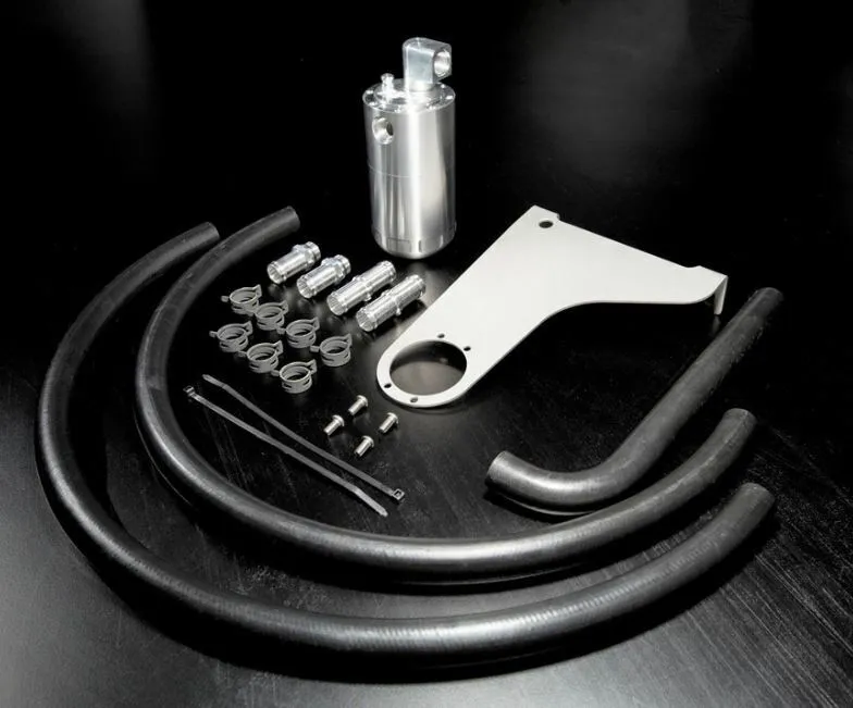 HPD’s oil catch can / oil separators come in universal and complete kits with all required stainless steel laser cut bracketry, correct size hose tail fitting, washable internal stainless mesh filters, cut to size oil resistant hosing, bolts, nuts, washer, spring clamps and installation instructions for each vehicle.