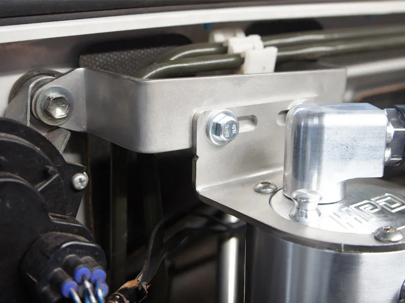 Our solution was to move the location of the kit to the firewall on factory mounting points between the windscreen wiper motor and firewall for a neat and easy to maintain catch can.