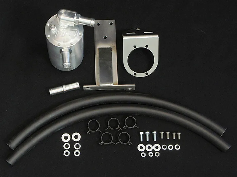 HPD’s oil catch can / oil separators come in universal and complete kits with all required stainless steel laser cut bracketry, correct size hose tail fitting, washable internal stainless mesh filters, cut to size oil resistant hosing, bolts, nuts, washer, spring clamps and installation instructions for each vehicle.