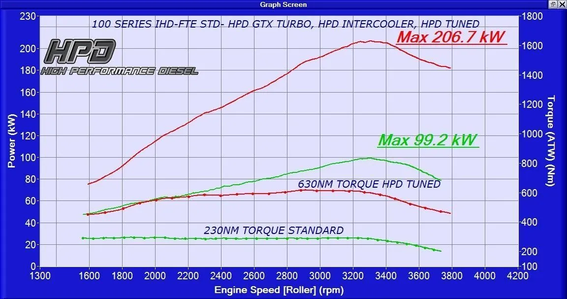 NOTE: For these results you will require tuning module, we reconmend Unichip for best results, HPD series 2 front mount intercooler kit, turbo back 3" exhaust, injector upgrade, boost controller, heavy duty clutch (if manual) or valve body upgrade in automatics. Results may vary from vehicle to vehicle. Information provided here is meant as a guide only as there are many factors that may effect overall power output.