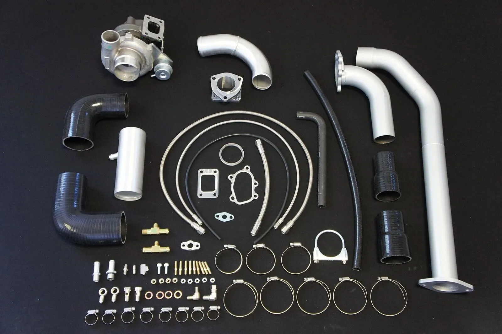 This Turbo kit comes with a standard option of a custom HPD 2.5" dump pipe and full 2.5" straight through exhaust system. Should you be wanting to run a larger turbo than comes in our standard kit you may want to upgrade you exhaust to the 3" system to allow the vehicle to breath better due to the increased volume of air the motor will now be producing. If you are wanting to run your own exhaust you can select the 'no exhaust and dump pipe' option and the price will be adjusted accordingly.
