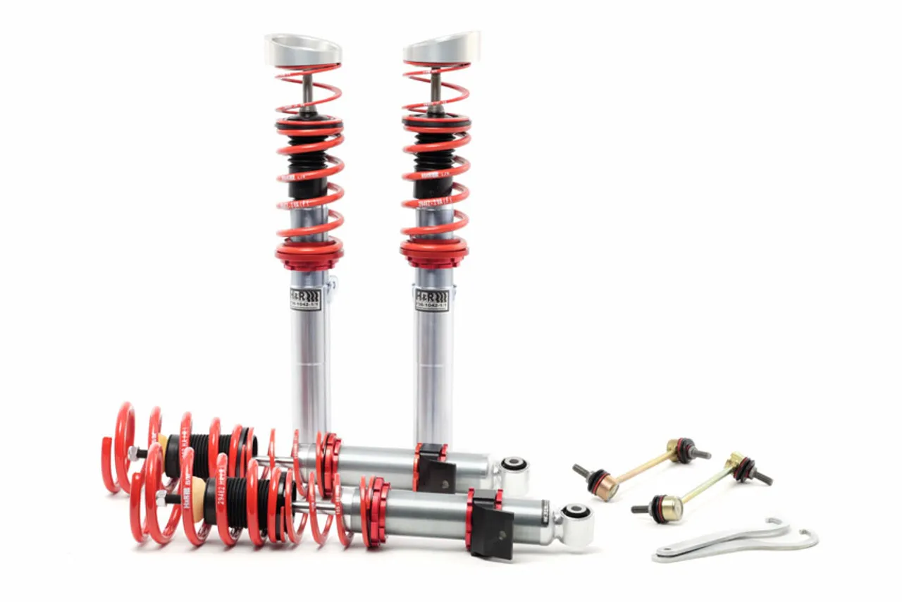 H&R coil overs are engineered for street use. Unlike traditional twin-tube shock absorbers, H&R Coil Overs feature a state-of-the-art mono-tube gas shock construction. Combined with the knowledge and skill of H&Rs suspension engineers, the use of this state-of-the-art technology results in the best suspension product that you can buy for your vehicle. H&R is the originator of the true coil over system for the street and continues to lead the market with an extensive line of applications. Each shock is tuned with a progressive rate spring that is engineered from its inception to work with the shocks valving, creating a finely tuned suspension system. H&R Coil Overs are the suspension answer for everybody, from daily drivers to the serious tuner. *Features* * Unrivaled comfort, performance * Lowering range of 1.0 to 2.5 inches on average * Fully threaded shock body for adjustable vehicle lowering * Awesome handling and ride comfort