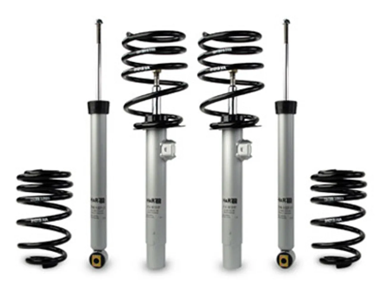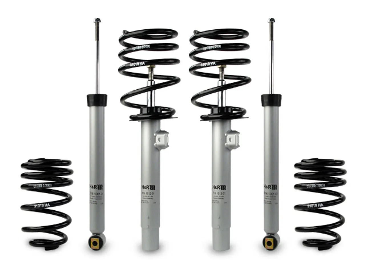 H&R Cup Kits are the ideal solution for those that want a street-engineered performance suspension with super-low looks. More than the so-called matched spring and shock packages offered by some, H&R Cup Kits are the result of over 25 years of experience in suspension design. With no guesswork involved, the H&R Cup Kit provides an application-specific spring and shock system designed to deliver improved handling, uncompromised ride comfort and sleek styling in one precision-engineered package. Featuring lowering of more than 2.0 inches, H&R Sport Cup Kits are the ideal solution for those that want a street-engineered performance suspension with super-low looks. More than the so-called matched spring and shock packages offered by some, H&R Cup Kits are the result of over 25 years of experience in suspension design. With no guesswork involved, the H&R Cup Kit provides an application-specific spring and shock system designed to deliver improved handling, uncompromised ride comfort and sleek styling in one precision-engineered package. Because the H&R Cup Kit consists of specially made springs and shocks designed and engineered together, they provide a lower ride height and make a cohesive suspension package that outperforms and is more comfortable than seperate off-the-shelf performance suspension components.