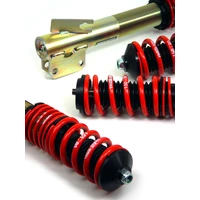 H&R coil overs are engineered for street use. Unlike traditional twin-tube shock absorbers, H&R Coil Overs feature a state-of-the-art mono-tube gas shock construction. Combined with the knowledge and skill of H&Rs suspension engineers, the use of this state-of-the-art technology results in the best suspension product that you can buy for your vehicle. H&R is the originator of the true coil over system for the street and continues to lead the market with an extensive line of applications. Each shock is tuned with a progressive rate spring that is engineered from its inception to work with the shocks valving, creating a finely tuned suspension system. H&R Coil Overs are the suspension answer for everybody, from daily drivers to the serious tuner. *Features* * Unrivaled comfort, performance * Lowering range of 1.0 to 2.5 inches on average * Fully threaded shock body for adjustable vehicle lowering * Awesome handling and ride comfort