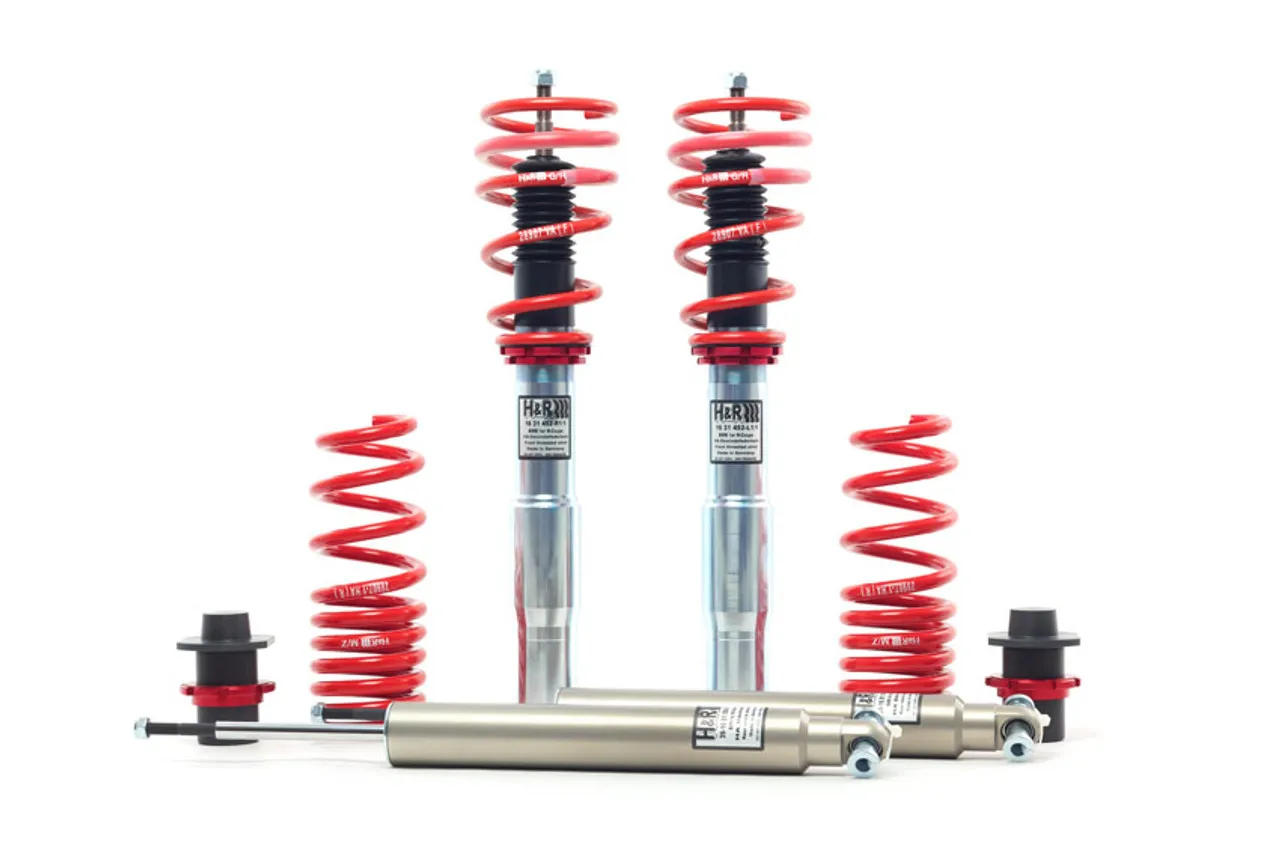 H&R coil overs are engineered for street use. Unlike traditional twin-tube shock absorbers, H&R Coil Overs feature a state-of-the-art mono-tube gas shock construction. Combined with the knowledge and skill of H&Rs suspension engineers, the use of this state-of-the-art technology results in the best suspension product that you can buy for your vehicle. H&R is the originator of the true coil over system for the street and continues to lead the market with an extensive line of applications. Each shock is tuned with a progressive rate spring that is engineered from its inception to work with the shocks valving, creating a finely tuned suspension system. H&R Coil Overs are the suspension answer for everybody, from daily drivers to the serious tuner. *Features* * Unrivaled comfort, performance * Lowering range of 1.0 to 2.5 inches on average * Fully threaded shock body for adjustable vehicle lowering * Awesome handling and ride comfort