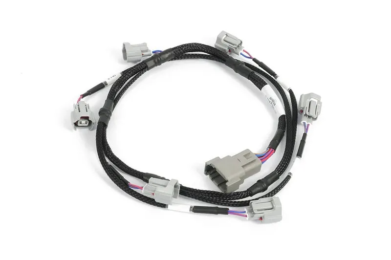 This sub-harness connects six injectors with Denso connectors to the injector breakout connector on the main terminated harness. Each injector plug is clearly labeled, ensuring straightforward installation and accurate cylinder identification for consistent and reliable fuel delivery.
