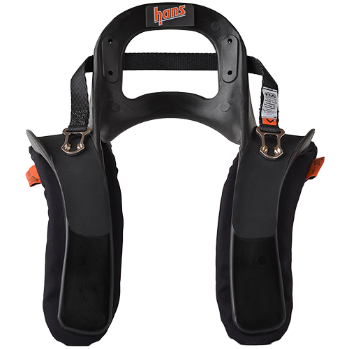 The HANS III represents the third generation of injection molded HANS devices and features a contemporary approach to reducing weight. Using an all new design and polymer, this device features a hollow collar that substantially minimizes weight while still meeting SFI 38.1 standards. Engineered reinforcements ensure an exceptionally strong structure that provides the same level of safety as every HANS device. The reduced mass guarantees the lightest and most comfortable injection molded HANS ever.Each HANS device is sold complete with two anchors (enough for one helmet), pads, and matching tether. Select standard button style (left) or Quick Click system with red pull string.