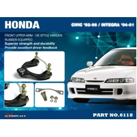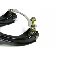The control arm made with HARDENED steel and compound with hard rubber bushing. A good control arm can regulate the movement of wheels quickly each time you turn or corner.