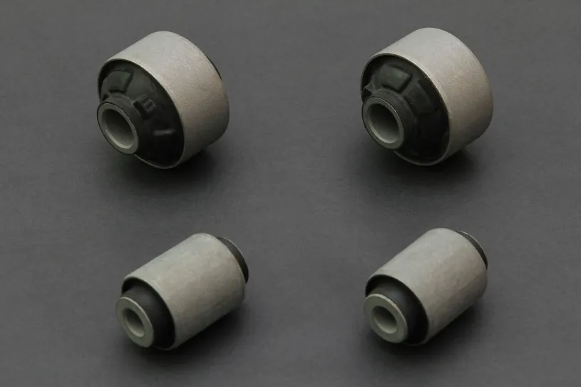 HARDENED rubber bushing made with high strength and anti-crack rubber material, solid steering response and driving suspension feel, resist side inclined while cornering at high speed maneuvers.