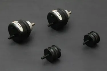 Hardrace reinforced hardened rubber engine mounts provide more strength than OE rubber mounts. Harden rubber mounts reduce engine movement significantly, providing the maximum output under engine acceleration.
