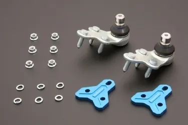 By installing the Hardrace Roll-Center Adjusters (Lower Ball Joints), it will correct the suspension geometry of a Lowered car, putting the Control Arms back closer to its original position, resulting in Increased steering response and stability while eliminating bump steer.