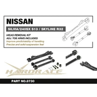 HICAS system is Nissan's active rear wheel steering systemHowever, it's concerned for interfering with driver input during high speed performance drivingHARDRACE HICAS REMOVAL Kit not only removes the original rack and the troublesome arms and ball joints, but the accurate toe control gives real handling benefits
