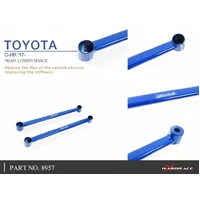 HARDRACE Rear Lower Brace are designed to stiffen up the chassis and reduce vehicle chassis flex. This will increase the rigidity of your car during high speed driving and hard cornering. This is why HARDRACE Rear Lower Brace can maximizes the performance of the suspension and brings better handling feeling and quicker response.