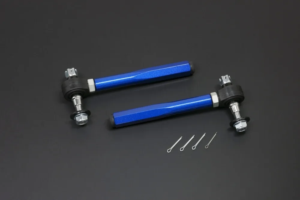 Steering tie rod angle changes as the suspension is lowered/liftedThis will make the car difficult to control due to the unwanted toe change during suspension travel (Bumpsteer)Hardrace RC tie rod ends, by relocating the tie rod end ball joint pivot point, will help return the geometry back to original specs for proper steering responseThe tie rod ends are manufactured from high quality pillow ball joint to provide a more direct and responsive steering feel and sustain extensive loadsIts adjustable design allows the rod height to be fine adjusted by spacers to accommodate different ride height settings