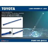 The rear track-bar controls lateral movement of the axle housing. When you setting your ride height, the fixed length of the OE track-bar will not fit height adjustments. This will results unnecessary stress on suspension and alignment problems. Hardrace adjustable rear track-bar allowing your suspension parts to work accuracy and set the alignment correctly and easily.