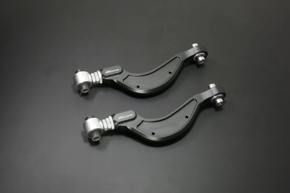 The camber kit allows fine adjustments to the rear end camber setting of the vehicle. It can either help improve cornering grip or get your car back to original alignment specs after lowering. The arms are made of high-strength CNC aluminum with anodized surface to offer high durability, strength and yet remain light-weight. With premium quality harden rubber & pillow ball bushings equipped, they also provide more precise and solid handling response over the factory components.