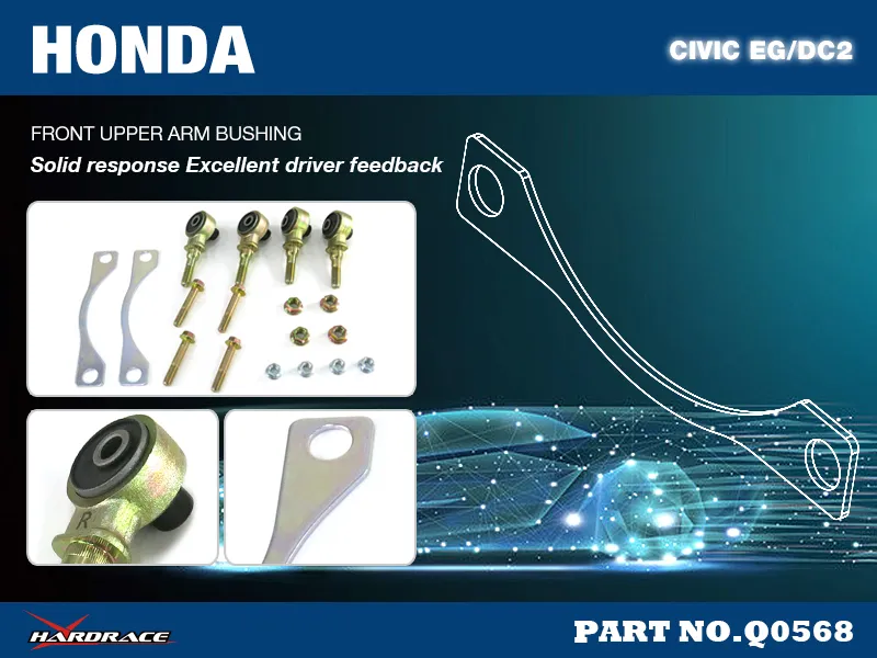 Hardrace harden rubber Bushings are made with high strength, anti-crack rubber material. Our Bushings provide a solid steering response and driving feel, optomising your suspension whilst delivering accurate repsonse.