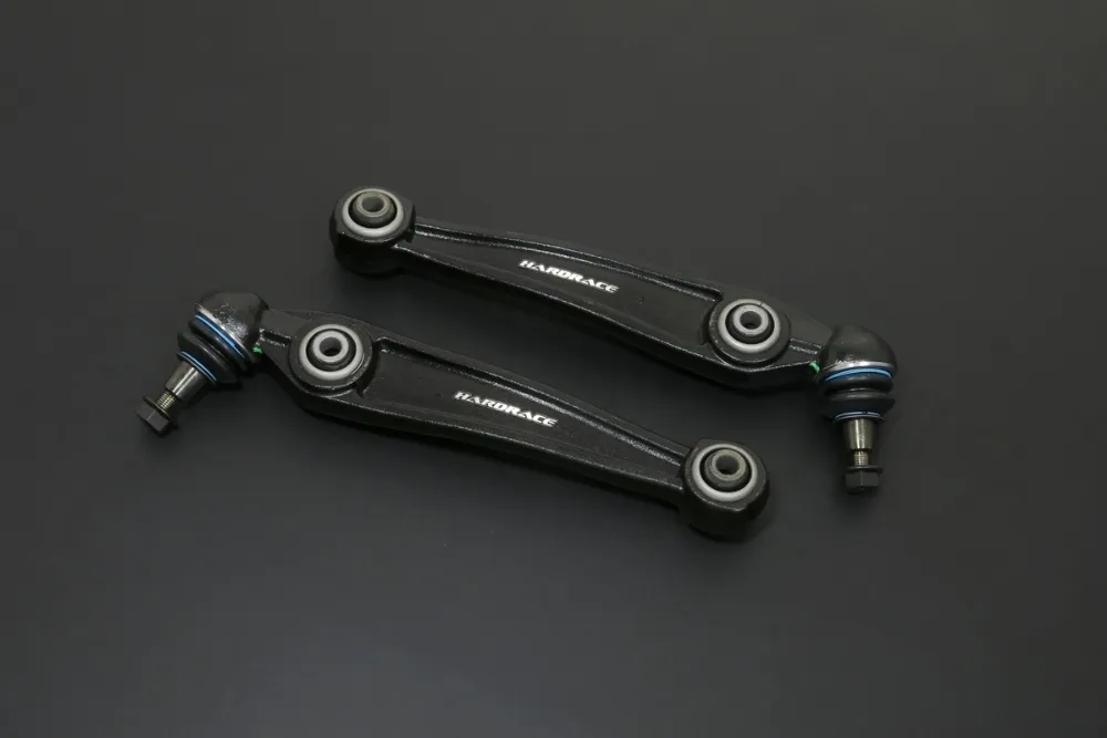 The control arms feature OE design with improved construction and materials. The arms are made of high quality forged steels to ensure great strength and durability. The equipped high quality harden rubber bushings and ball joints provide greater handling response over the factory components.