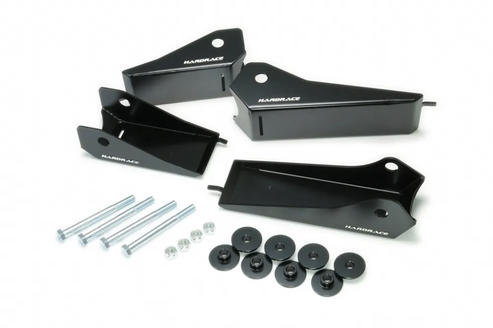 Hardrace control arm/ radius arm skid plates offer ultimate underbody protection to your JimnyThe shields are constructed from ED coated high strength steel to provide superior strength and durability, preventing damages to the control arm/ radius arm mounting brackets while off-roadingThe shields bolt into existing factory mounting holes and there is no drilling required for installation