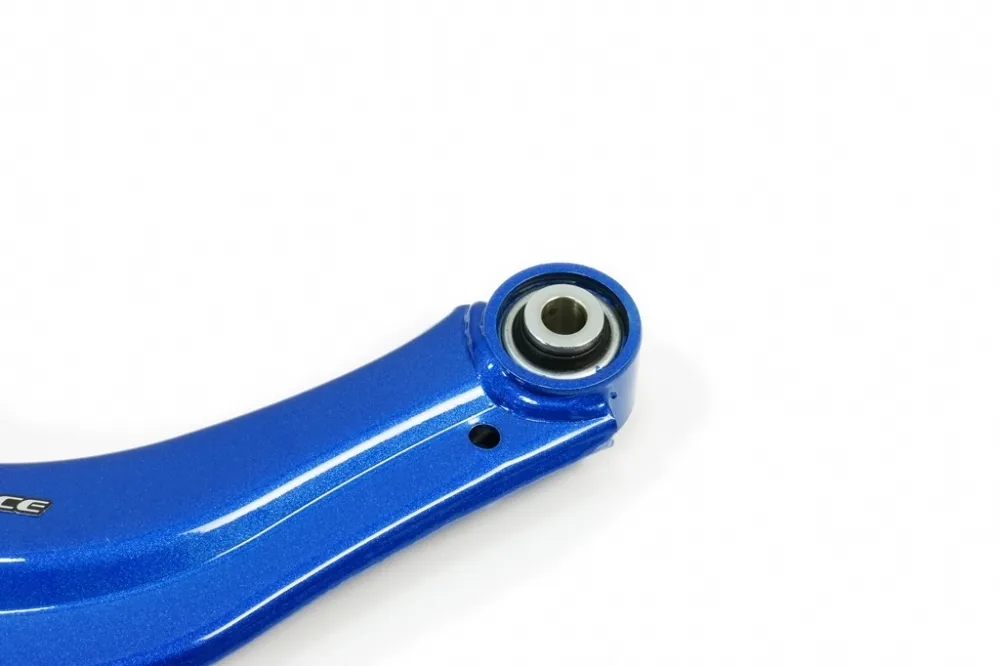 The camber kit allows fine adjustments to the rear end camber setting of the vehicle. It can either help maximize wheel contact patch to improve cornering grip or get your car back to original alignment specs after lowering. The arms are made of high tensile steel alloys to offer greatest strength and durability. With premium quality pillow ball bushings equipped, they also provide much more precise and solid handling response over the factory components.