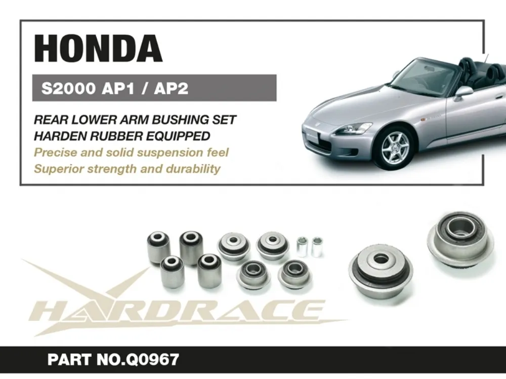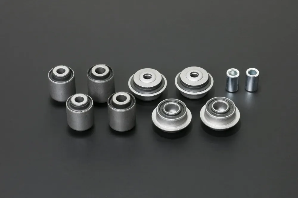 The reinforced bushings are made of high strength and anti-crack hardened rubber materials to offer solid handling response and resistance to unwanted suspension movement during hard acceleration, braking and cornering.