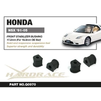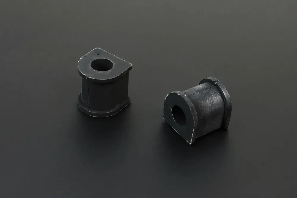 Hardrace reinforced stabilizer bushings are made of exclusive thermoplastic material for increased strength and hardness, oil/alkali/ozone resistant properties and self-lubricated function. Unlike ordinary NBR that tends to break easily or polyurethane that often causes squeaks and harsh rides, these bushings can achieve a perfect balance between the two, offering superior suspension response and durability while maintaining great ride quality.