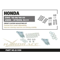 Hardrace caster adjusting kit is designed to add caster adjustability to your Civic & Integra with OE 2-piece type control arms. Simply by adding the washers between the two sections of LCA, you can achieve 0~2.5 degress of caster gain without any other suspension modification, defenetily a great way to improve steering response and straight line stability.