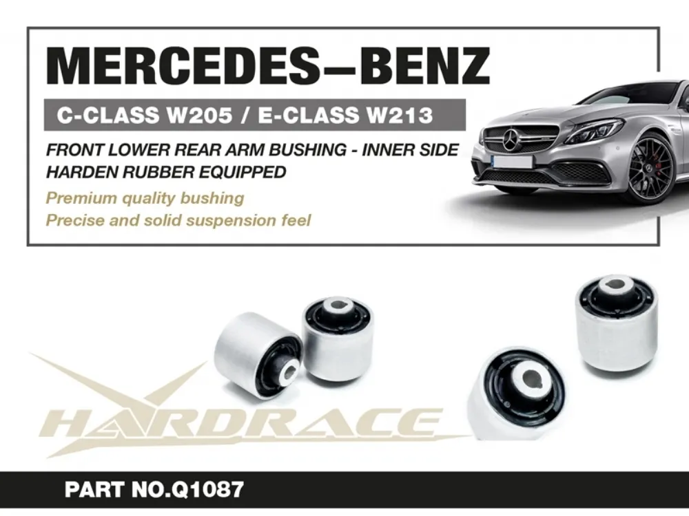 Harden rubber bushings are made of high strength and anti-crack rubber materials to offer solid handling response and resistance to unwanted suspension movement during hard acceleration, braking and cornering.