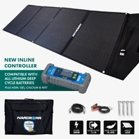 Our 200w Heavy Duty Portable Solar Panels are perfect to power a 2-4 person camping set up running LED lighting, a medium to large fridge, shower and other small electronic devices. You can connect them to a battery with the included battery clamps, or disconnect the controller and connect the panels directly to a compatible built-in regulator or DC-DC charger via the Anderson plug input.