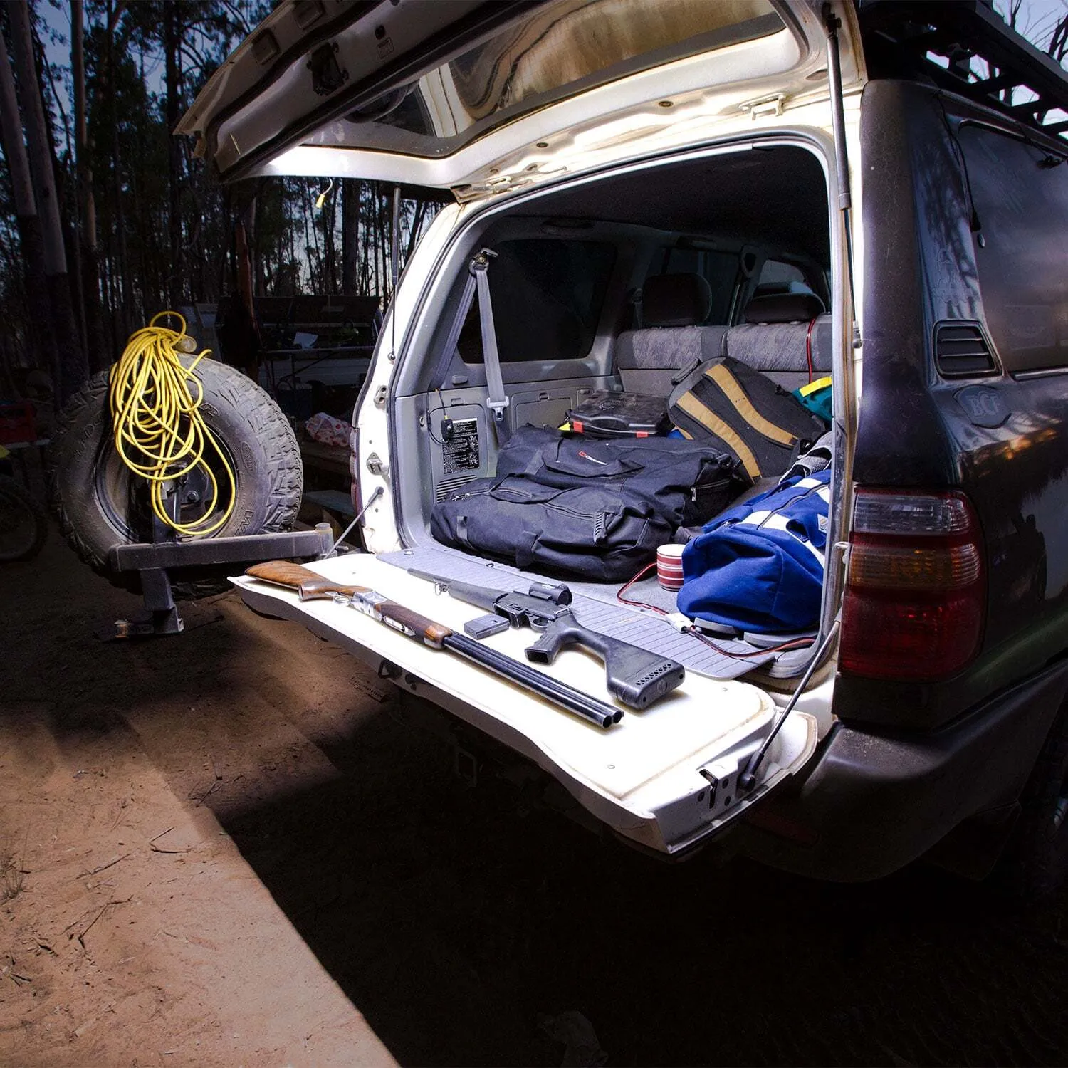 Both orange and white LEDs are built into the single strip light, and with our exclusive tri-colour dimmer you can now produce three shades of light: cool white, warm white and orange! The cool white light provides maximum brightness, whereas the new warm white setting gives off a light that is almost as bright as cool white, but with a pleasant soothing warmth. It’s perfect for setting a calm, happy mood in your campsite, particularly later at night. Finally, switching to the orange light naturally reduces the presence of bugs by up to 90%, and is particularly useful around food preparation and eating areas.