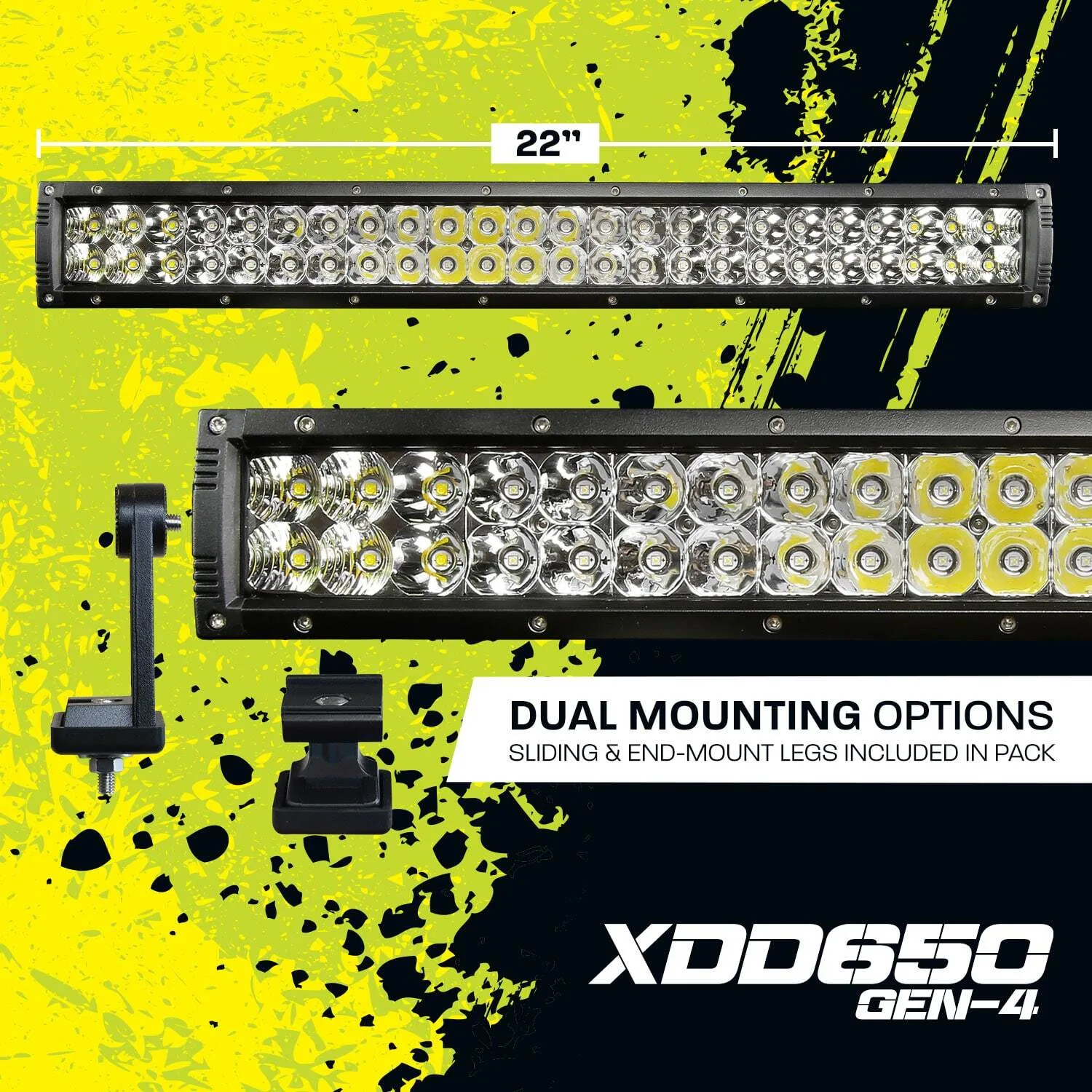 The 22? XDD650-G4 fits neatly inside most popular bullbars on small to medium 4wds and utes. It produces a strong 1 lux @ 650m forward beam as well as brightly lighting both sides of the road, whilst consuming substantially less power than a set of LED spotlights.