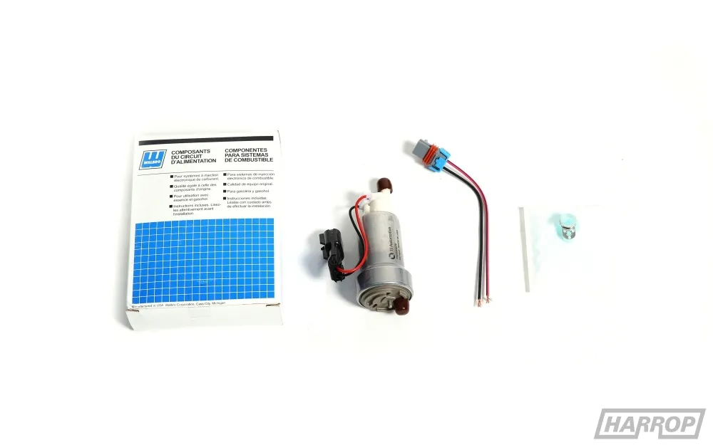 The Walbro 460LPH fuel pump includes a wire harness, pickup filter and installation instruction with authenticity proof as a genuine TI Automotive/Walbro unit.