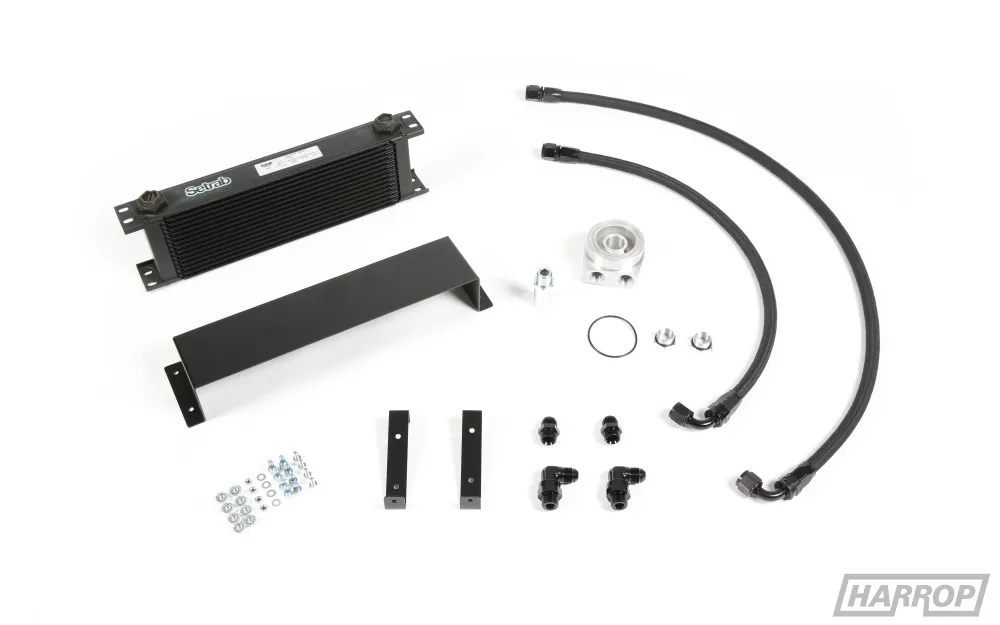 Harrop 86/BRZ Oil coolersupplied with custom air dam, and high quality Aeroquip Starlite hoses andfittings, mated to a Harrop high flow sandwich plate passing oil through anindustry leading Setrab Cooler Core. The Harrop 86/BRZ Oil Cooler is raceproven to keep your engine oil temperatures low under high load for eitherstreet or track work.