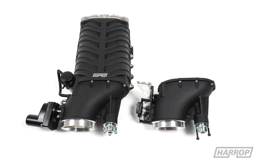 • Supplied with OEM throttle body adaptor with option to upgrade to compact designed Harrop 115 Throttle Body which bolts directly on to Supercharger inlet