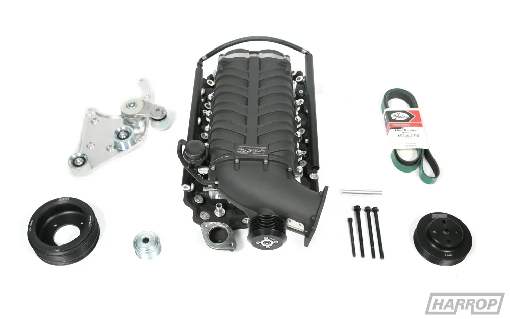 The Harrop TVS2300 Supercharger Kit offers the latest in supercharger technology for the Holden 5.0L V8 Engine with EFI heads. The front drive / front inlet design allows for a shorter less restrictive intake path allowing for improved airflow and superior performance with an integrated Supercharger Bypass System to relieve boost under light load conditions. The Supercharger Manifold features a high-density water to air intercooler system, with a 36mm thick intercooler brick.