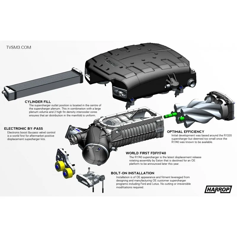 Designed and manufactured by Harrop to OE standards specifically for the E9X M3, utilising latest generation Eaton TVS supercharger technology.