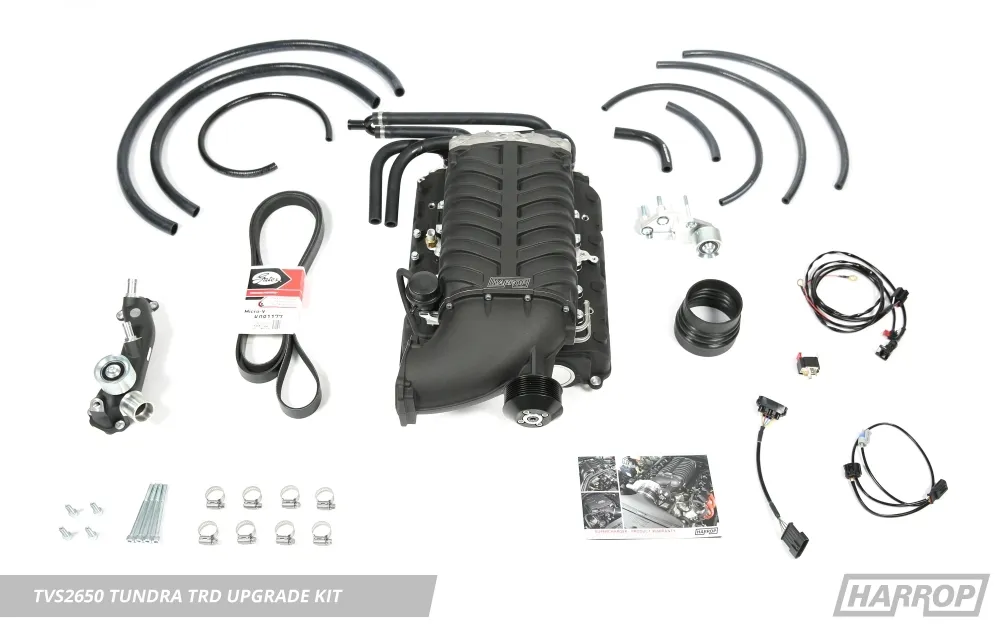 Harrop is proud to offer the innovative TVS2650 Supercharger Kit to suit the Toyota 3UR-FE 5.7L V8 found in global vehicle platforms like the Toyota Tundra, Landcruiser 200 Series and Lexus LX570. The Australian engineered and manufactured Supercharger Kit utilises the largest, most-efficient rotating group ever produced by Eaton, the TVS2650, which is 40% larger than the TRD TVS1900 supercharger (2650cc VS 1900cc).
