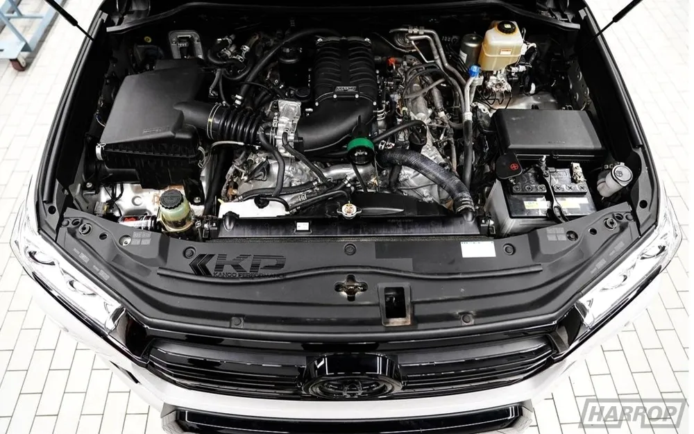 The Harrop TVS1900 Supercharger Kit offers the latest in Supercharger Technology for the Toyota 1UR-FE 4.6L V8 Engine, commonly found in the Landcruiser 200 (MY2012). This system features a front drive/front inlet design for a shorter, less restrictive intake path and an integrated bypass system which relieves boost under light loads conditions, reducing drive loss and improving fuel economy.