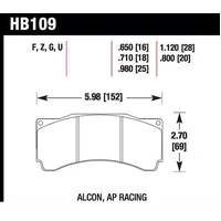 High torque with less initial bite than DTC 70. Superior release and torque control characteristics. Brake pads designed for cars with high deceleration rates with or without down force. Recommended for use with DTC-70 when split friction between front and rear axle is desired.